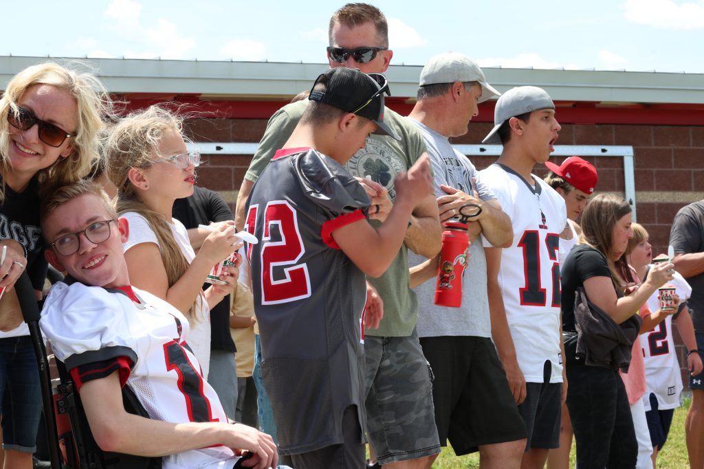 The objective of this program is to teach our football players to be true Sentinels. A Sentinel is a soldier or guard whose job is to stand and keep watch. Our hope is that through participating in the 12th Sentinel Program our players will learn how to be leaders who stand up for and protect kids with special needs.